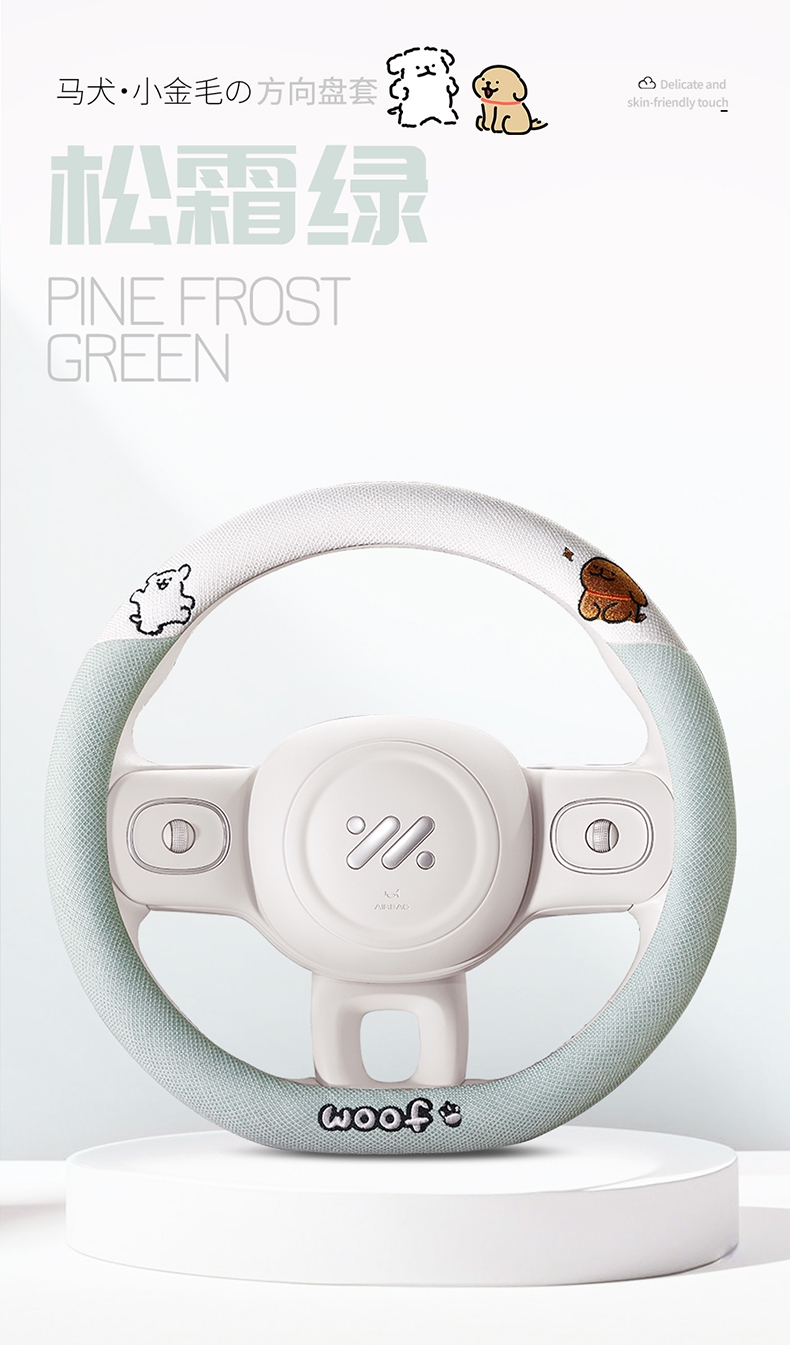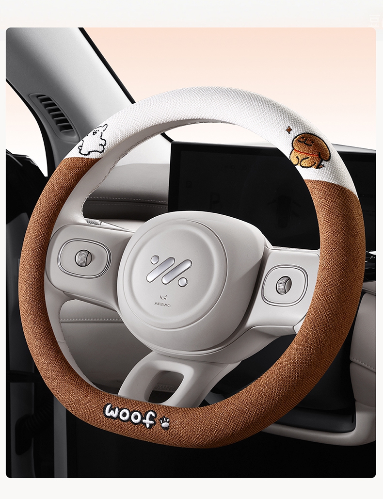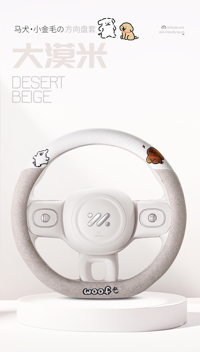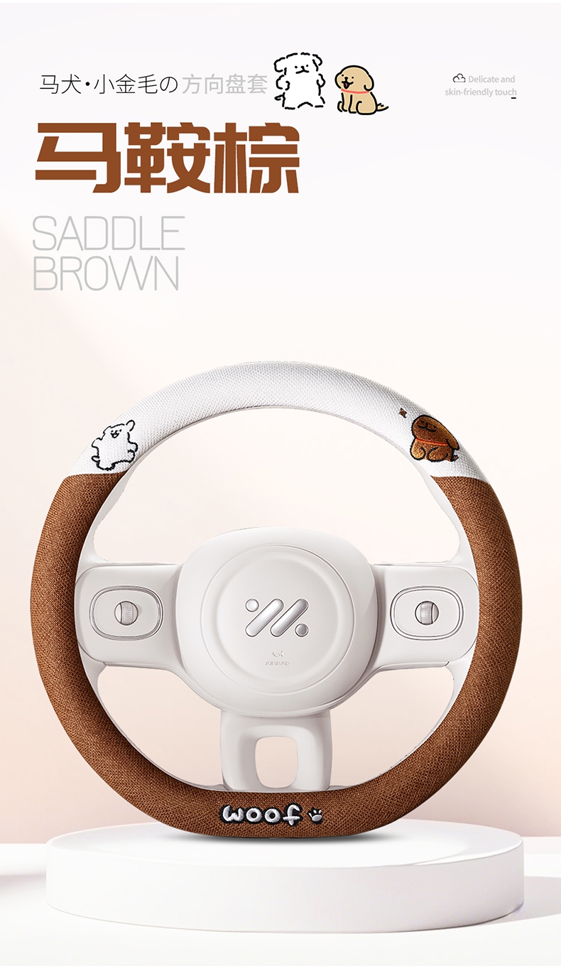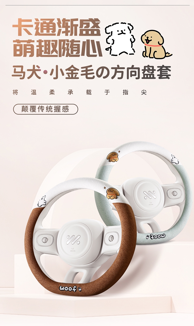 ДомМагазинЧехол на руль автомобиляЧехол на руль автомобиля с милым щенком, всесезонный, льняной, в мультяшном стиле, украшение для девочки, зимний плюшевый чехол на руль