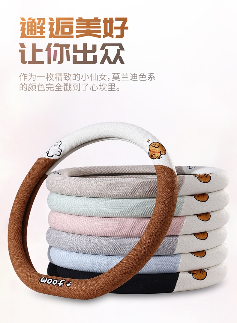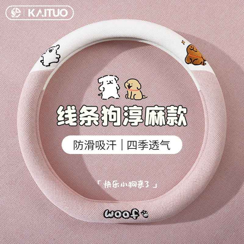 ДомМагазинЧехол на руль автомобиляЧехол на руль автомобиля с милым щенком, всесезонный, льняной, в мультяшном стиле, украшение для девочки, зимний плюшевый чехол на руль