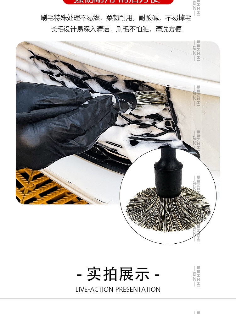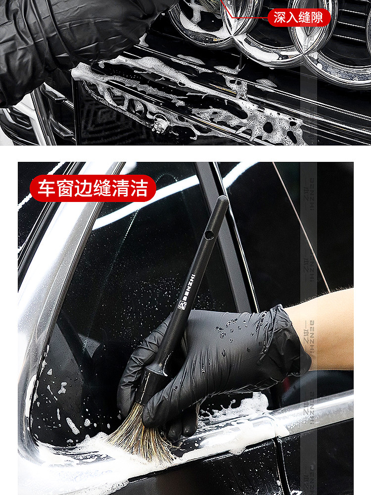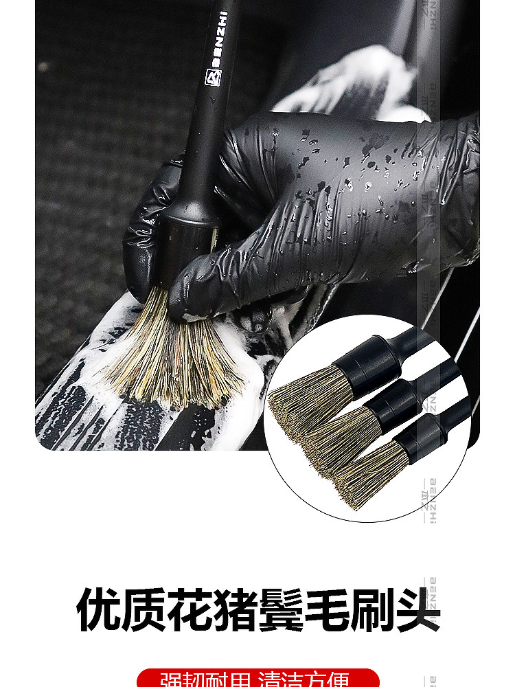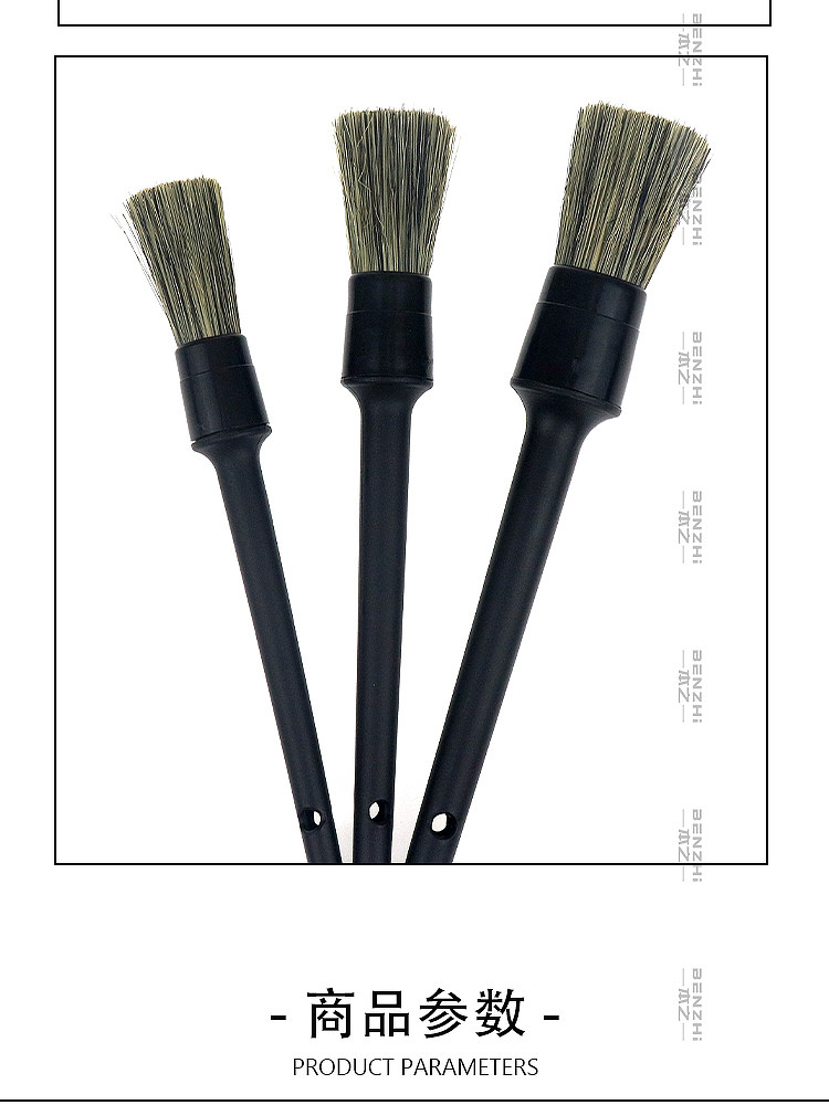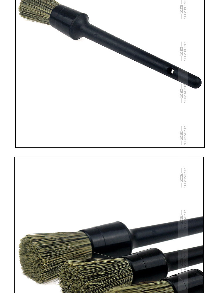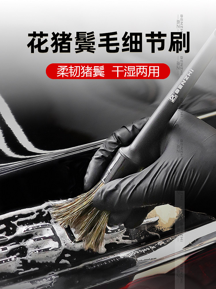 Щетка из натуральной щетины кабана для чистки деталей автомобиля, щелей в лакокрасочном покрытии, колесных дисков, логотипов автомобилей и чистки салона.