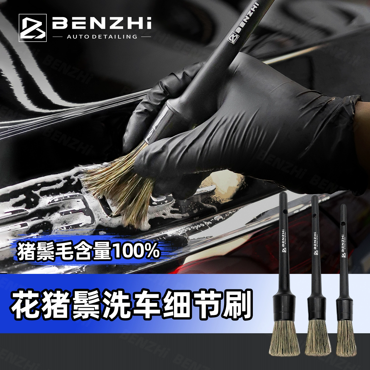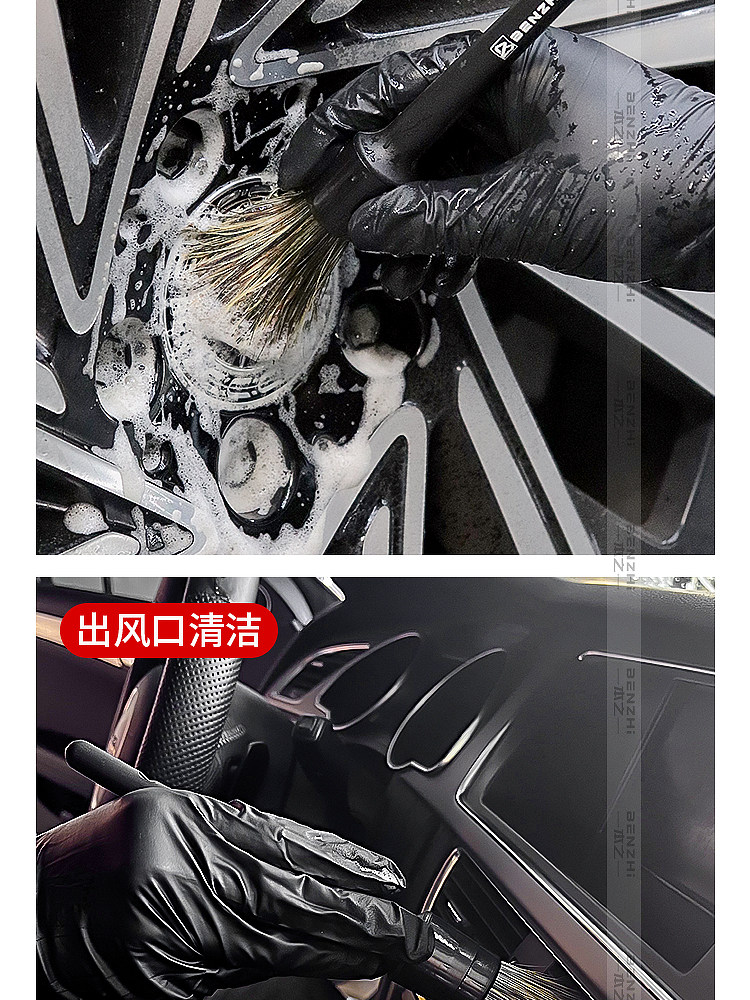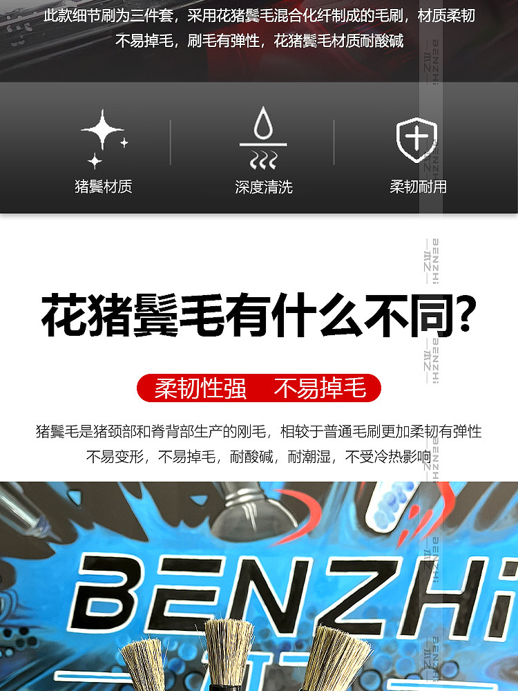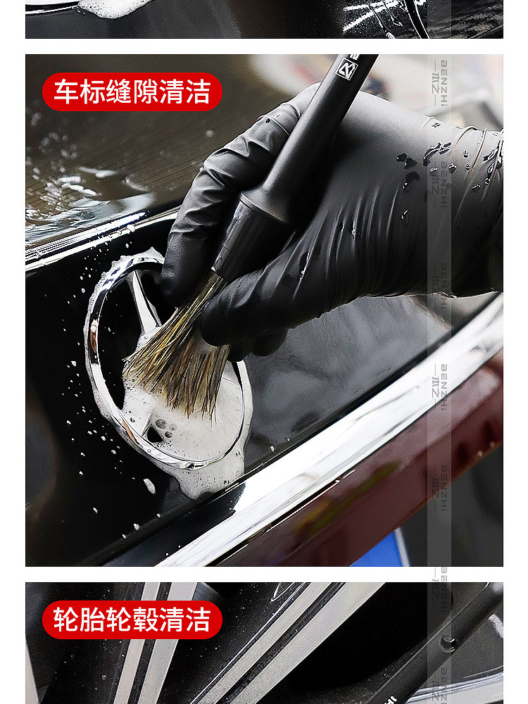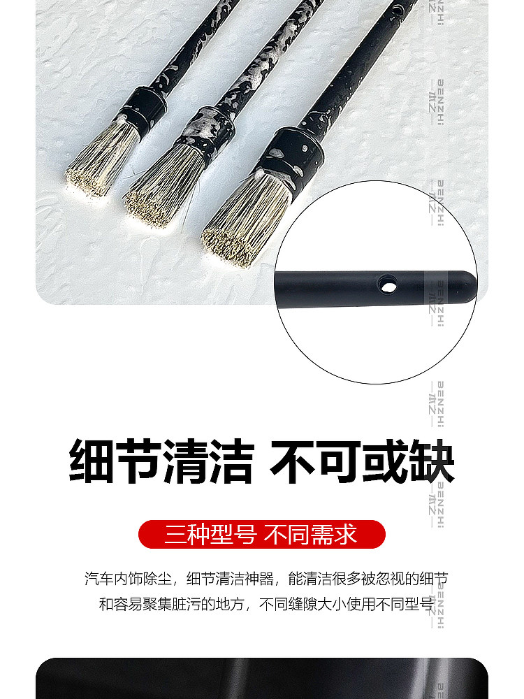 Щетка из натуральной щетины кабана для чистки деталей автомобиля, щелей в лакокрасочном покрытии, колесных дисков, логотипов автомобилей и чистки салона.
