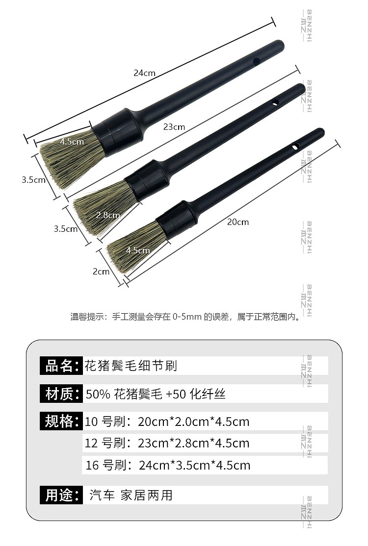 ДомМагазинДетейлинг автомобиляЩетка из натуральной щетины кабана для чистки деталей автомобиля, щелей в лакокрасочном покрытии, колесных дисков, логотипов автомобилей и чистки салона.