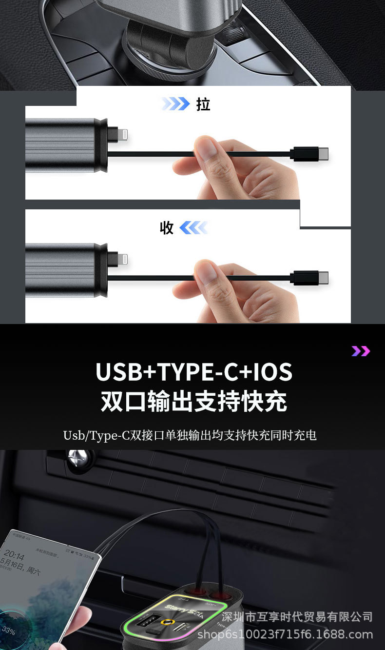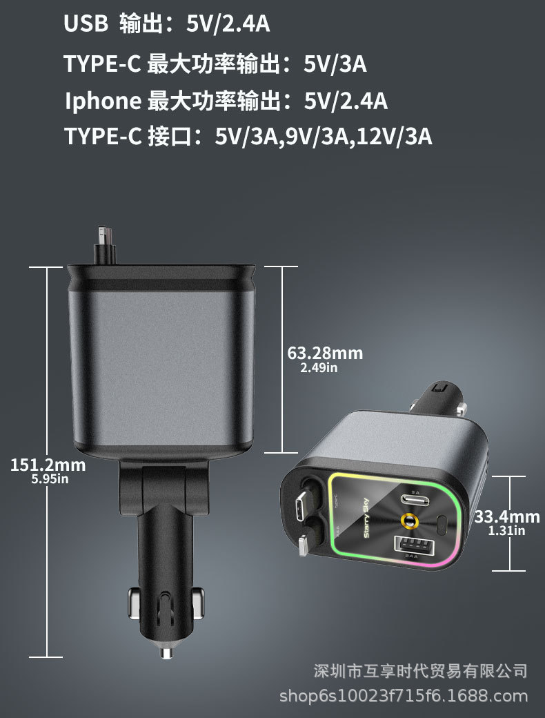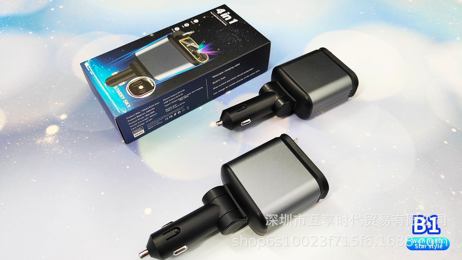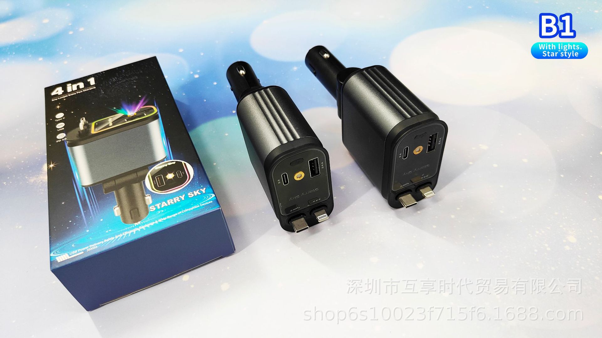 ДомМагазинАвтомобильное зарядное устройствоЭксклюзивное трансграничное автомобильное зарядное устройство для мобильного телефона 4 в 1, многофункциональное, выдвижной кабель, проекция звездного неба, зарядная вспышка, новый