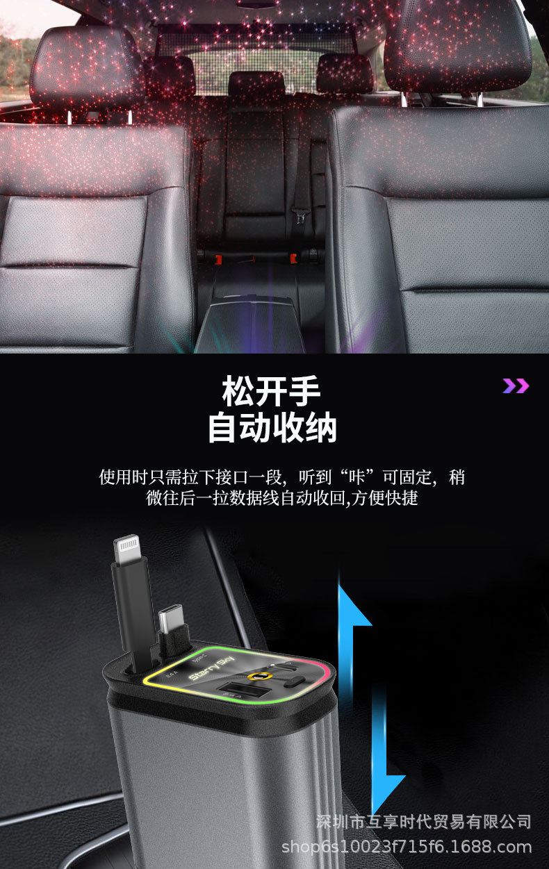 Эксклюзивное трансграничное автомобильное зарядное устройство для мобильного телефона 4 в 1, многофункциональное, выдвижной кабель, проекция звездного неба, зарядная вспышка, новый