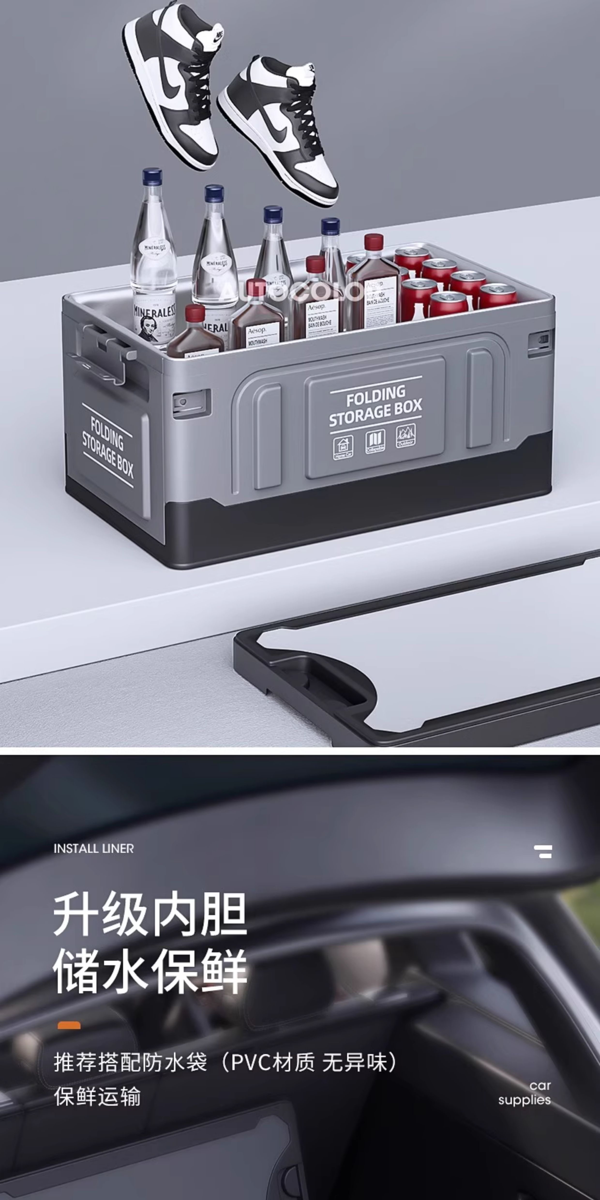 ДомМагазинАвтомобильный ящик для хранения вещейЯщик для хранения в багажнике автомобиля, складной органайзер большой вместимости для автомобилей, ящик для кемпинга на открытом воздухе