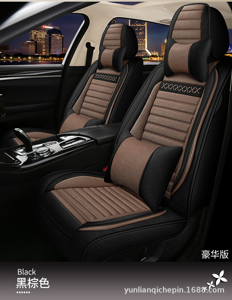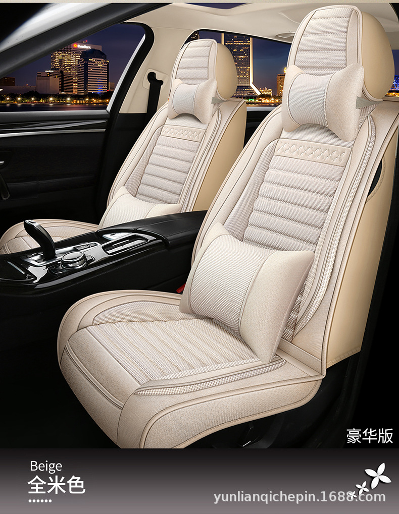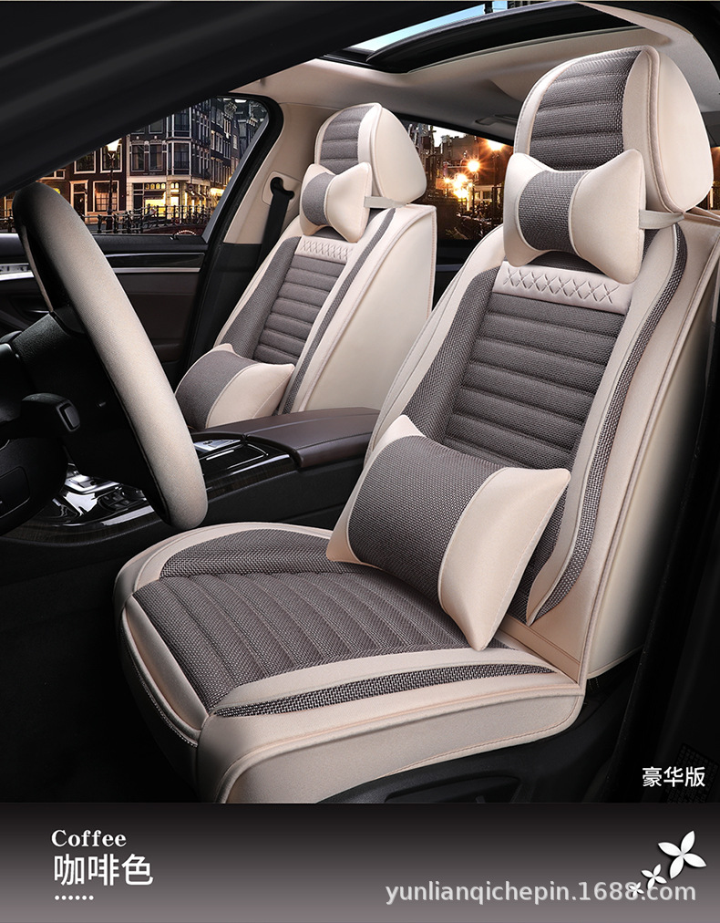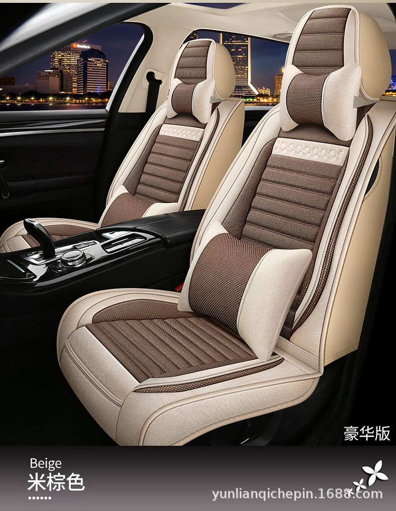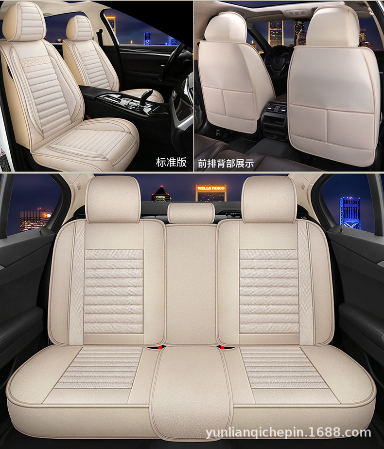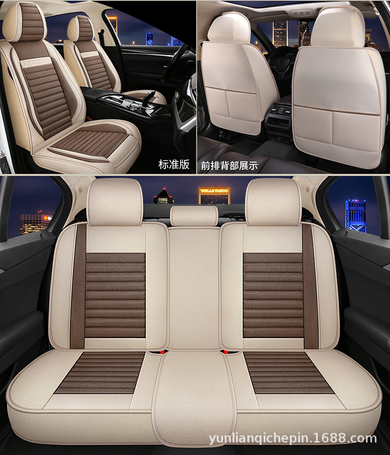 ДомМагазинчехол汽车坐垫四季通用全包围座套亚麻透气布艺坐垫全车五座通用坐垫套