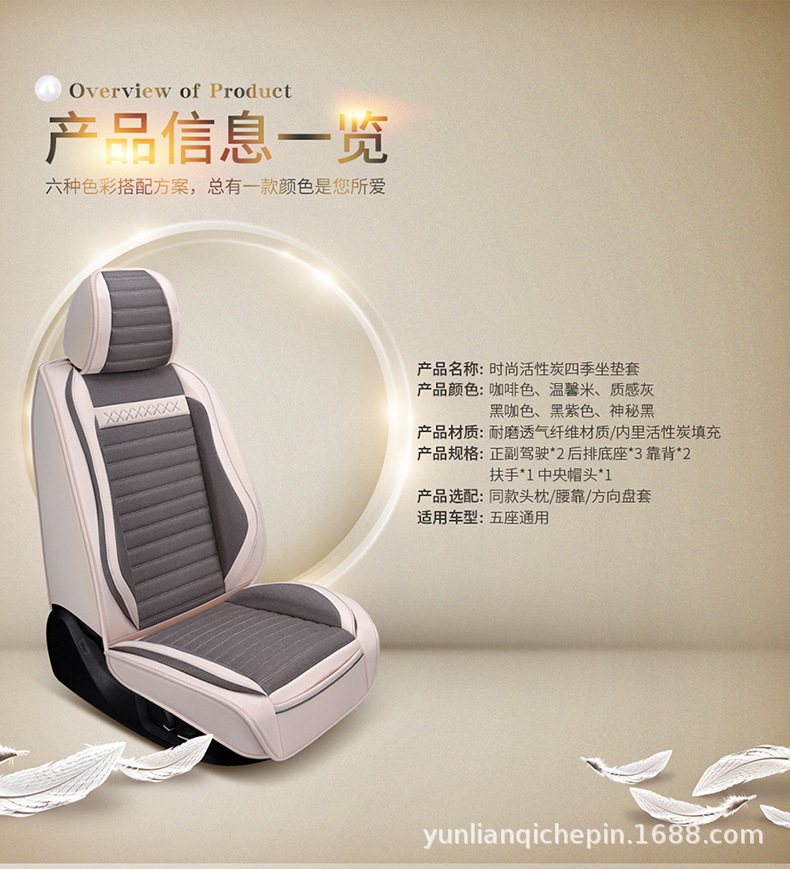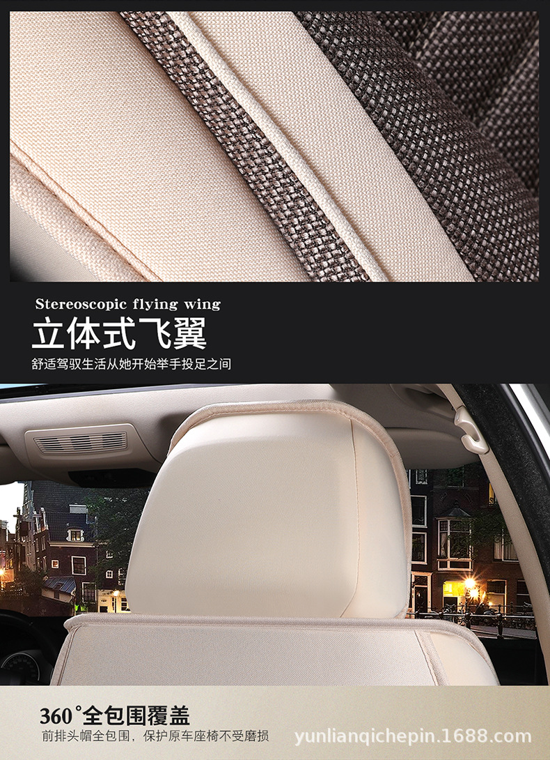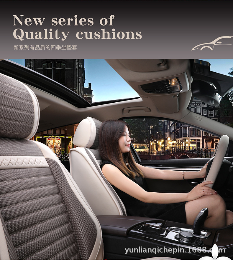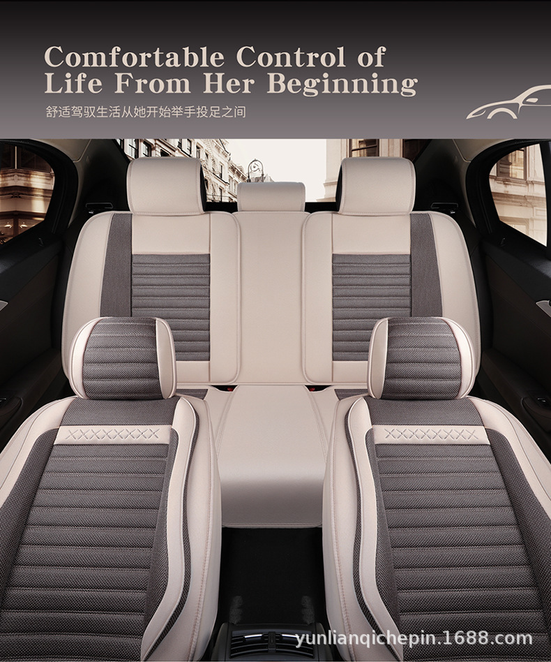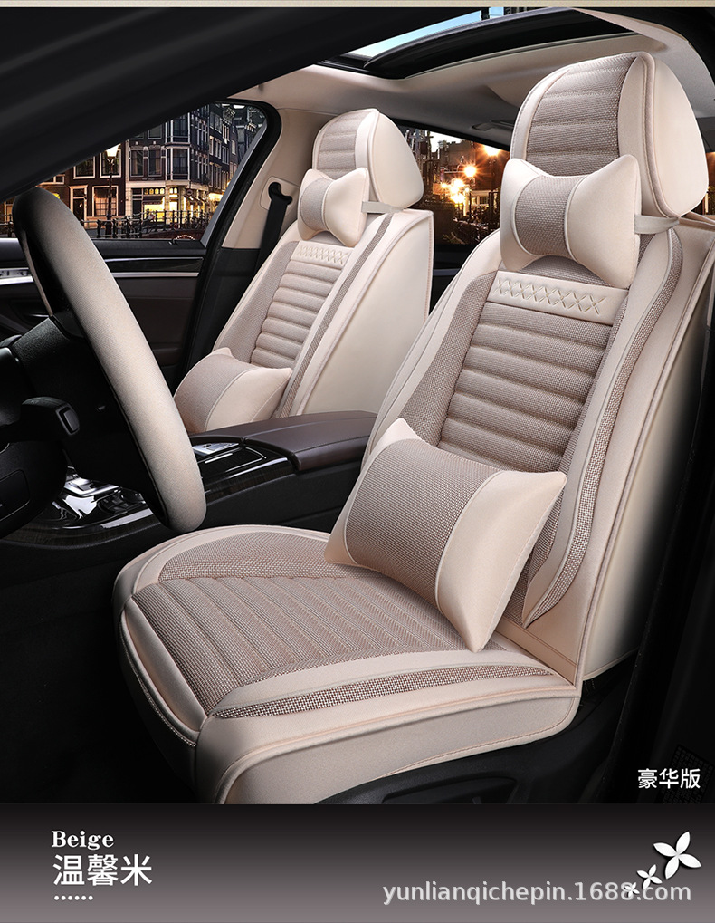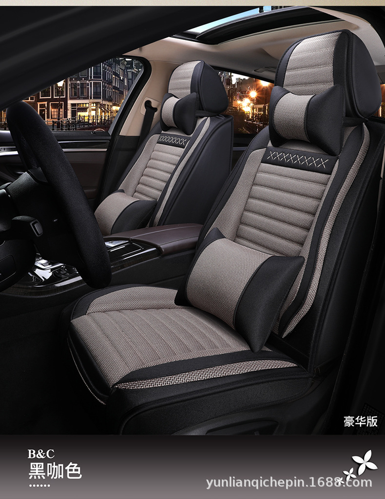 ДомМагазинчехол汽车坐垫四季通用全包围座套亚麻透气布艺坐垫全车五座通用坐垫套