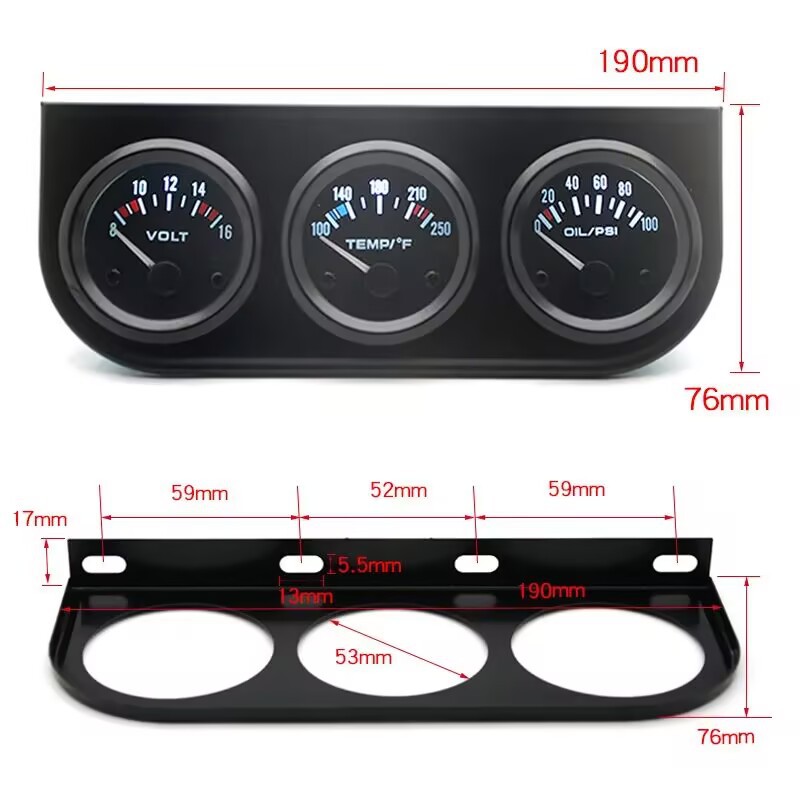 2英寸52MM水温华氏油压PSI 电压 三联表带传感器 汽车仪表