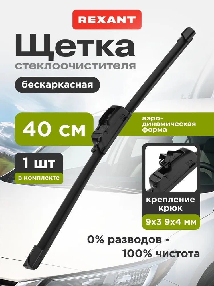 Добавить в список желаний Добавить к сравнению400 мм. Щетка стеклоочистителя бескаркасная с крючком для крепления REXANT
