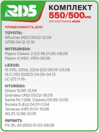 550 500мм. Комплект гибридных щеток стеклоочистителя RD5 на Chevrolet Epica Шевроле Эпика, Renault Sandero; Рено Сандеро, Mitsubishi Pajero; Паджеро