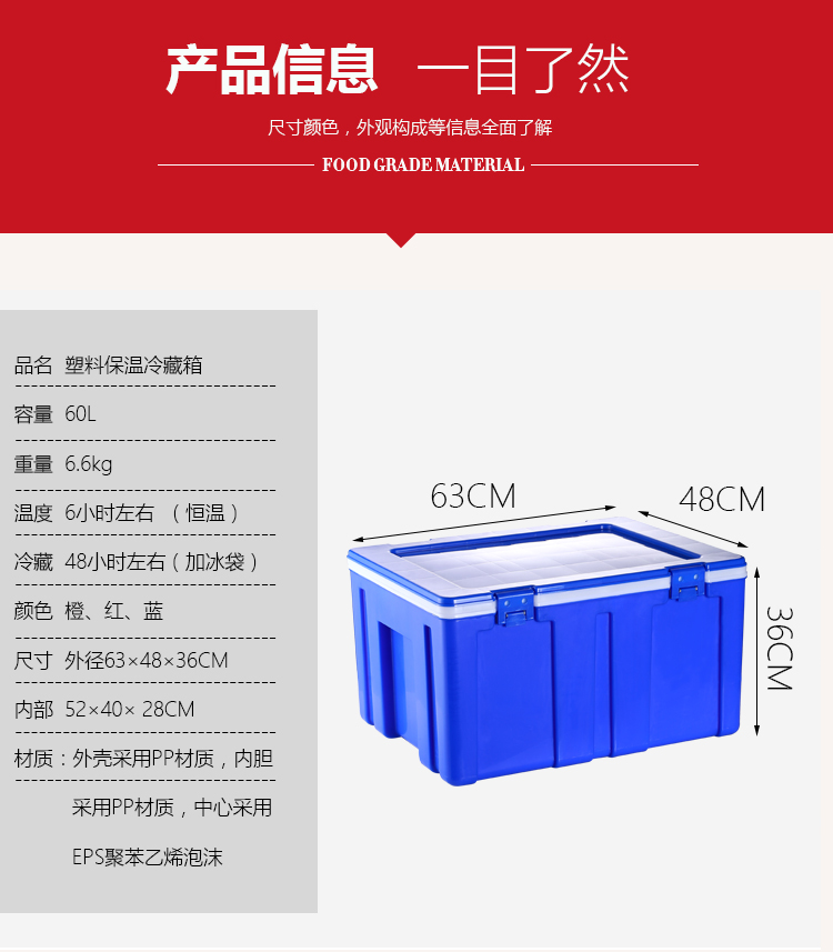 ДомМагазинИзолированный бокс для установки на транспортное средство60-литровый термоконтейнер для коммерческой доставки еды (паровые булочки, рис), большой размер для уличных торговцев и автомобилей, пластиковый пакет для льда
