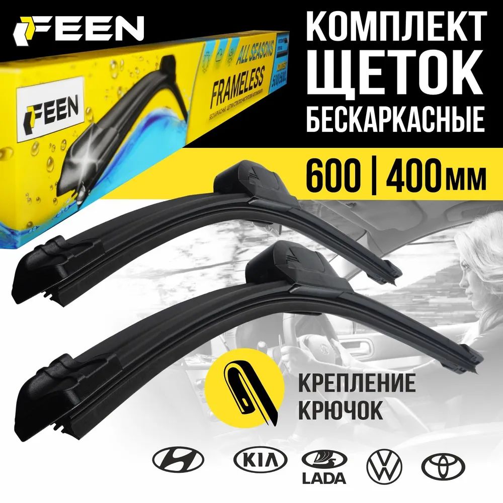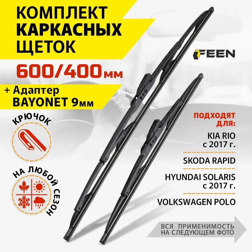 600 400 мм. Крепление Hook. Комплект гибридных щеток стеклоочистителя FEEN дворники на Skoda Rapid Шкода Рапид; Hyundai Solaris Солярис; Kia Rio Киа Рио; Volkswagen; Гранта; Toyota RAV4 Тойота РАВ4;