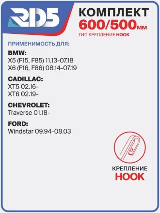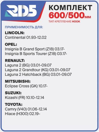 600 500 мм. Комплект бескаркасных модифицированных щеток стеклоочистителя RD5 600 мм + 500 мм (60 см + 50 см)