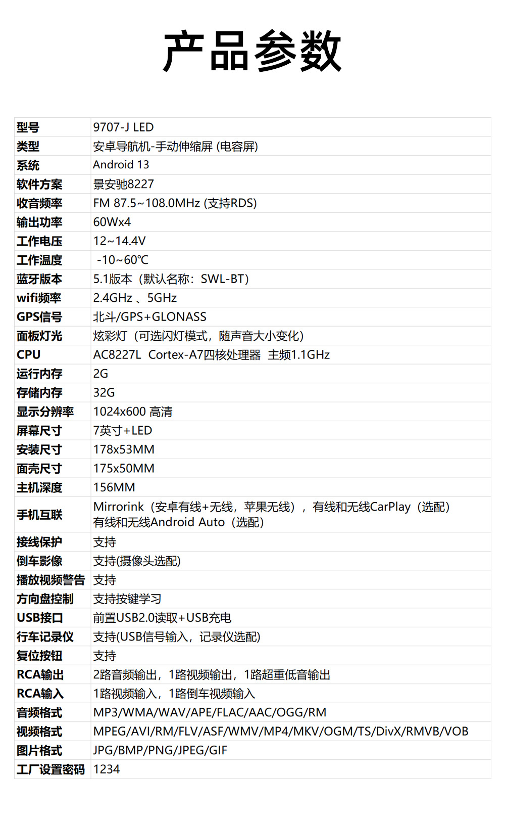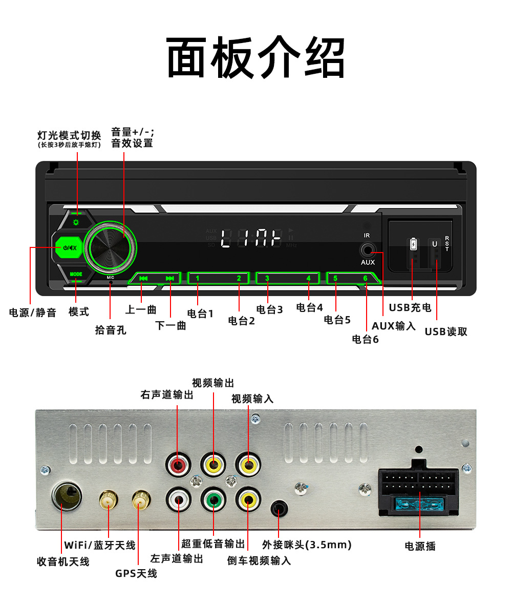 配件:1.主机 2.GPS天线 3. 20P电源线 4.小辣椒天线 5.说明书 6.遥控器(配件、说明书、包装会不定时更新,以实际收到货为准)