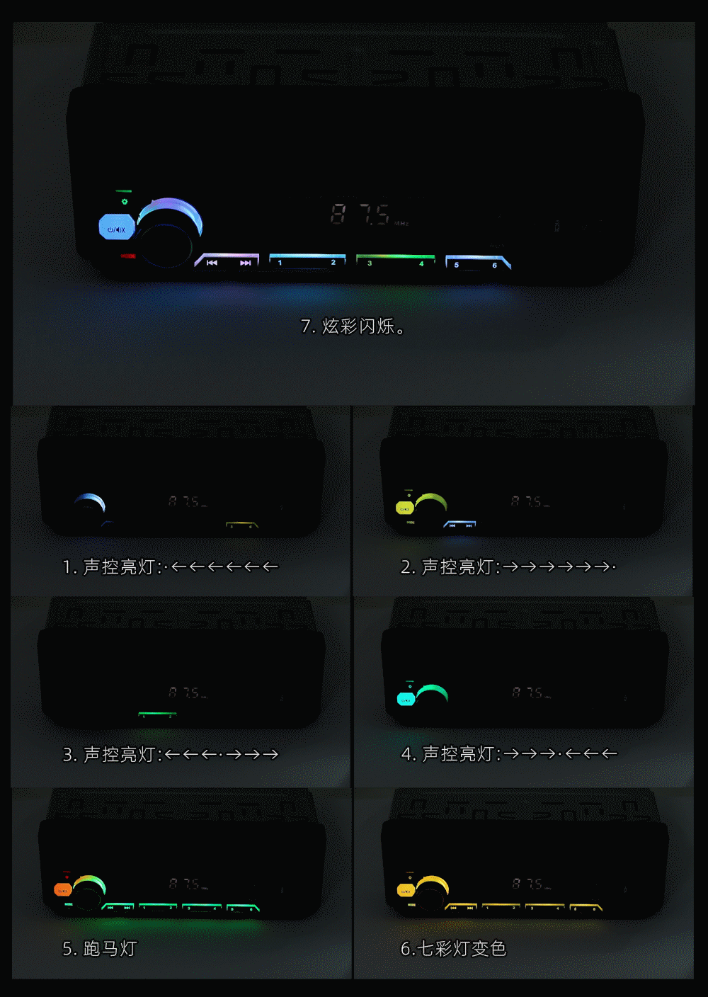 收音频率:FM 87.5~108.0MHz (可切换 欧洲、东欧、北美、南美、非洲、澳大利亚、日本 区域收音频率)