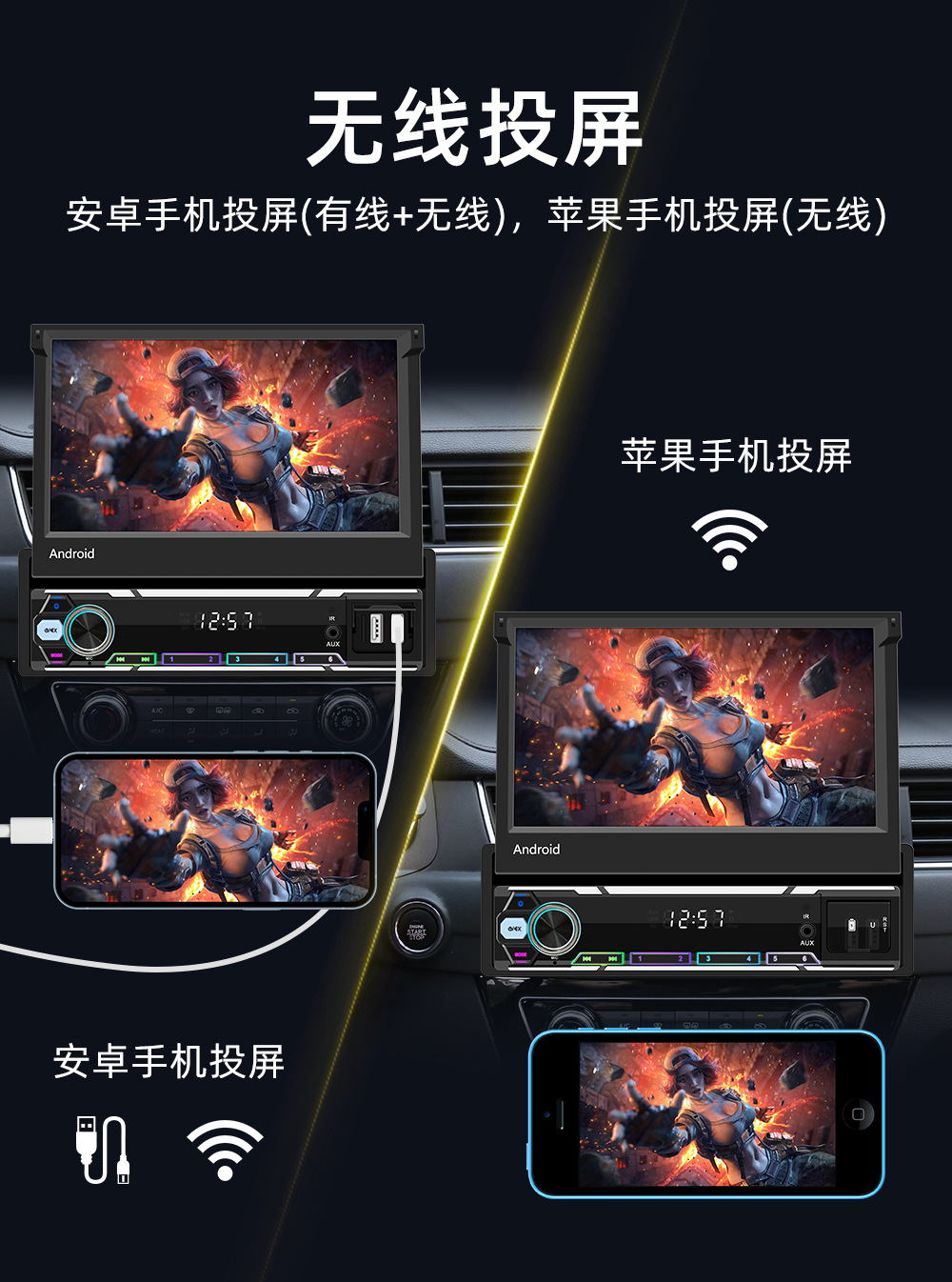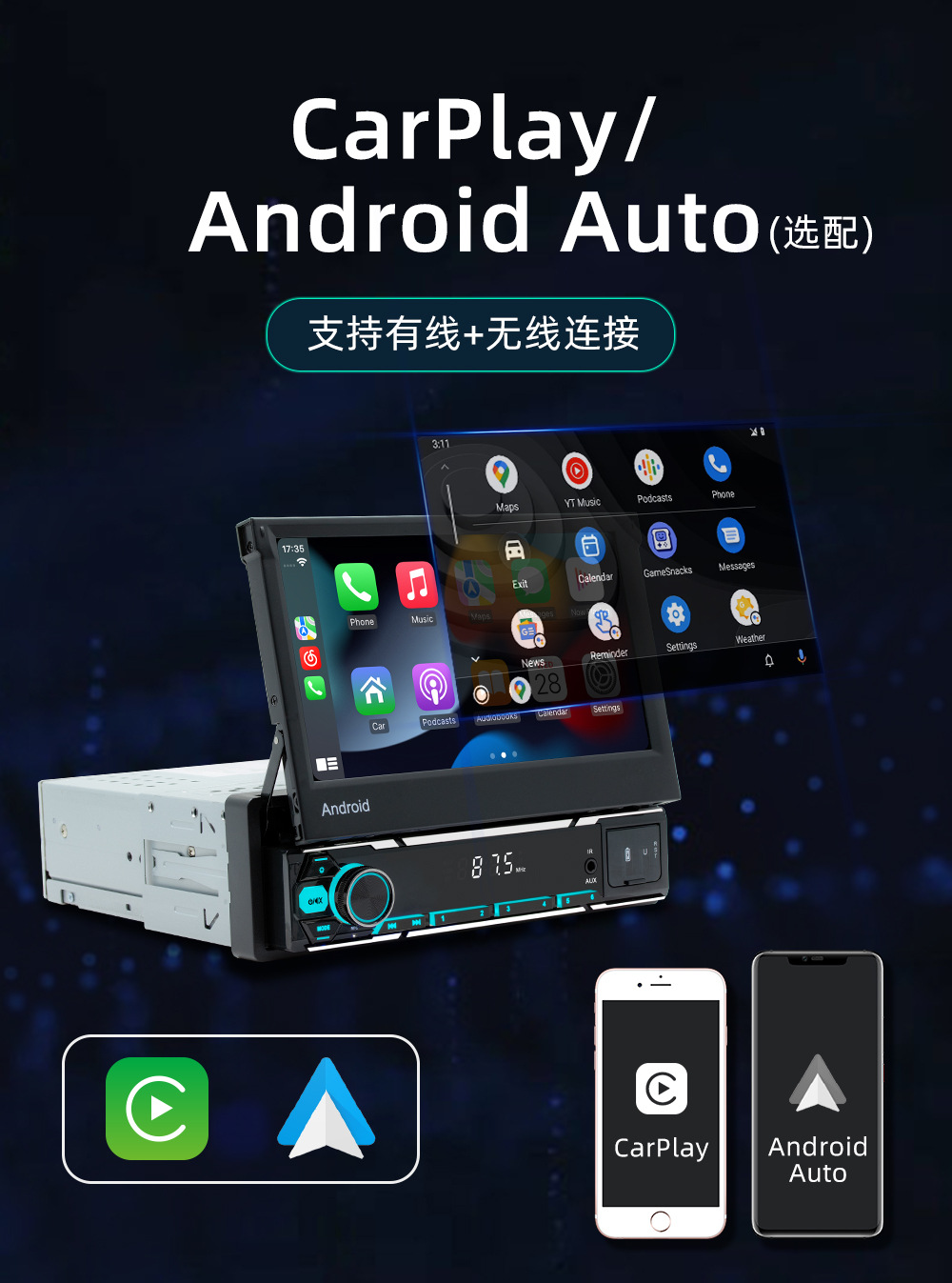 类型:安卓导航机-手动伸缩屏 (电容屏)