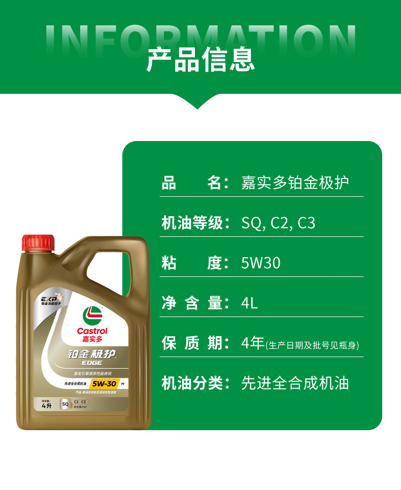 Castrol Platinum Edge 5W-30 — полностью синтетическое масло для технического обслуживания автомобилей, официальный оригинальный продукт, класс вязкости SQ, 4 л