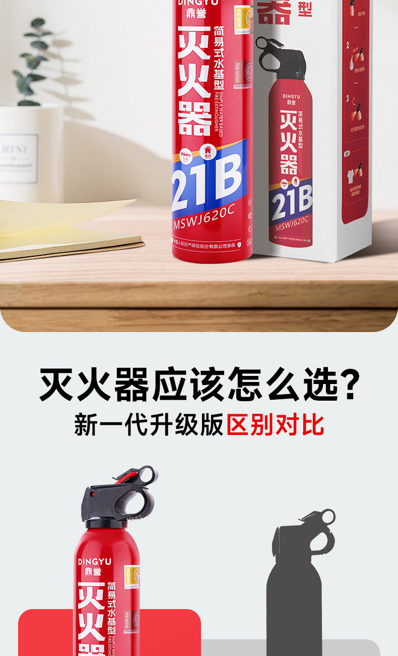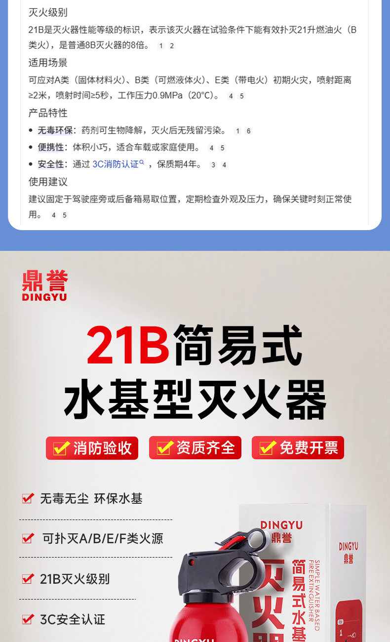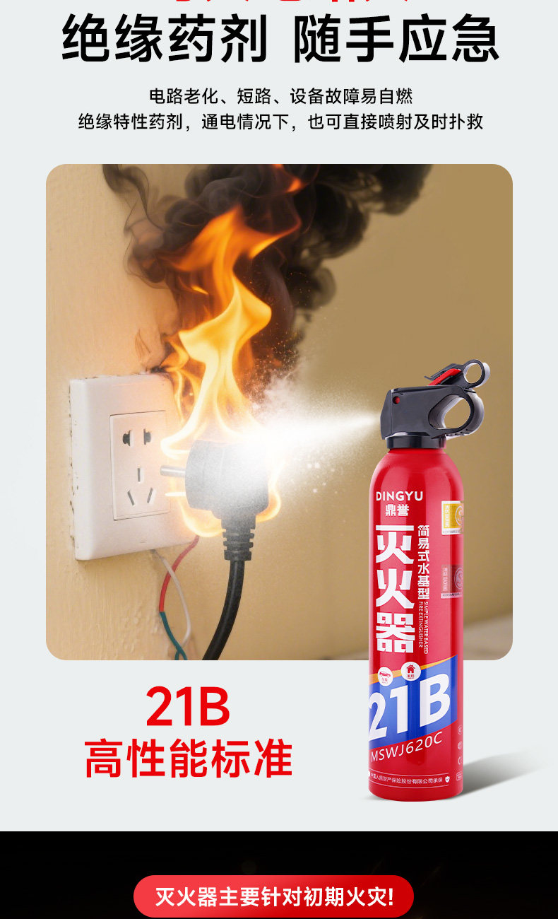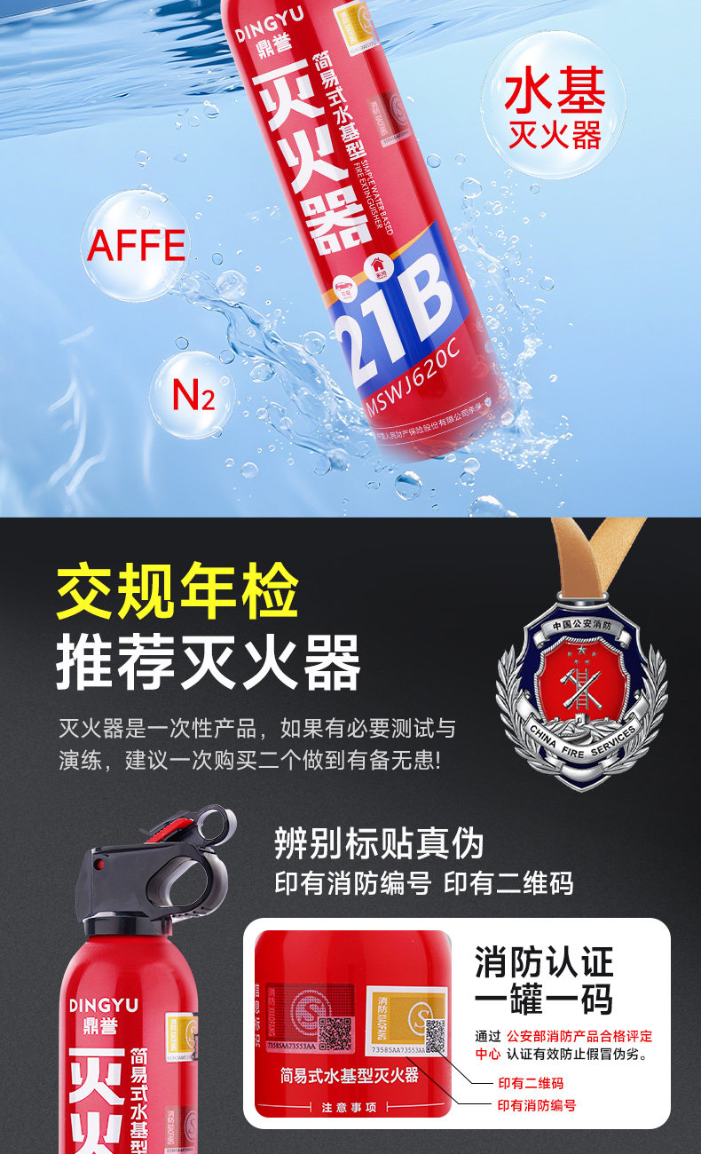 ДомМагазинОгнетушитель для транспортных средствDingyu 2025 Новый автомобильный огнетушитель на водной основе 21B, устойчивый к высоким температурам, для тушения пожаров в жилых помещениях, сертифицированный по национальному стандарту 3C, оригинальный продукт
