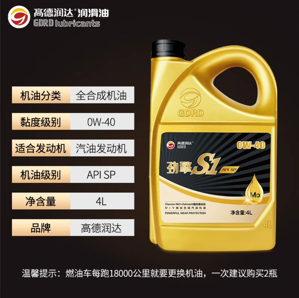 ДомМагазинТехническое обслуживание автомобилейGaoderunda (серия Jingqing S1) Полностью синтетическое масло для бензиновых двигателей 4+5 на основе полиальфаолефинов (PAO) SP 4 л — техническое обслуживание автомобиля