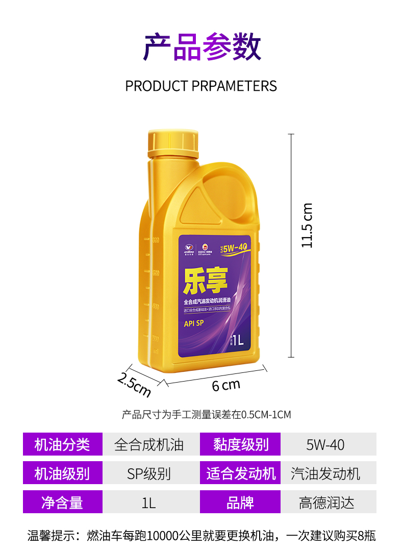 ДомМагазинТехническое обслуживание автомобилейGaoderunda Enjoy полностью синтетическое моторное масло, моторное масло для технического обслуживания автомобилей, смазочное масло, класс SP, 5W-40, бутылка 1 л