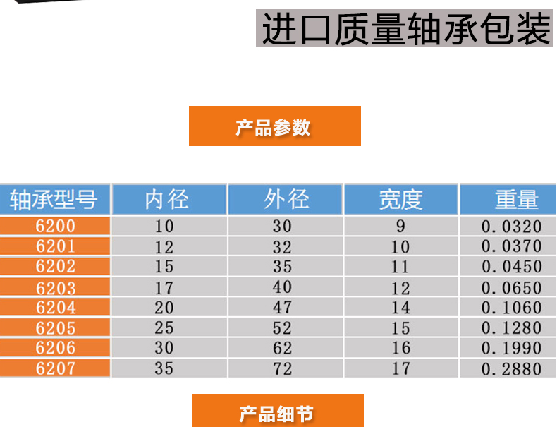 轴承材质 : 轴承钢 / 不锈钢