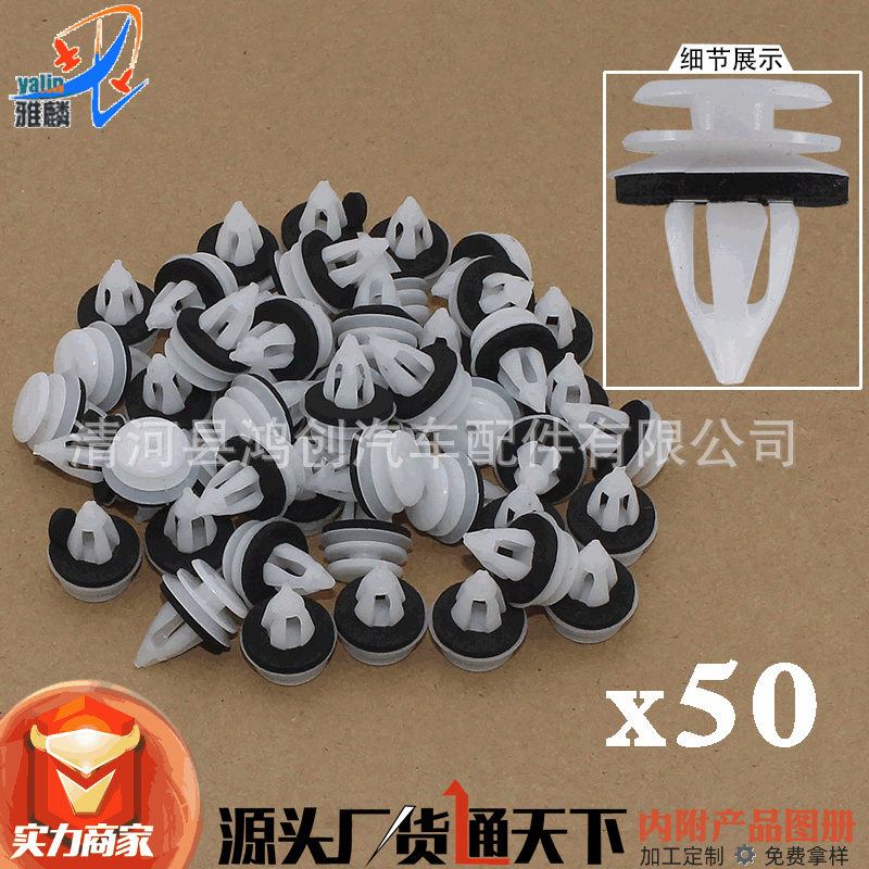 汽车位置用卡扣;汽车顶棚卡扣丰皮铆钉;内饰板卡扣;门饰板卡扣;护板卡扣;底边梁卡扣;座椅卡扣固定卡子;灯扣快丝座子贡螺丝;汽车锁扣;流水条卡扣;后备箱卡扣;叶子板内衬卡扣;机盖隔热板卡扣;隔热棉卡子;密封条卡扣;轮门卡扣;支撑杆卡扣;玻璃托卡扣;玻璃扣;脚垫卡扣;子母扣;双合扣;压条卡扣;保险杠卡扣(前杠 后杠);中网卡扣;机盖扣;穿芯钉;穿心钉;窗帘扣;地板扣;地毯扣;水管卡;油管卡;线卡;德式卡箍;美食喉箍;强力水管卡子;喷水嘴卡扣;压条钉;门提;门保险;开尾销钉;膨胀扣;膨胀螺丝;螺丝扣;膨胀螺丝扣;抽芯钉;胶墩;衬套;金属叶子板螺丝;铁片;螺钉;螺母;铁卡子