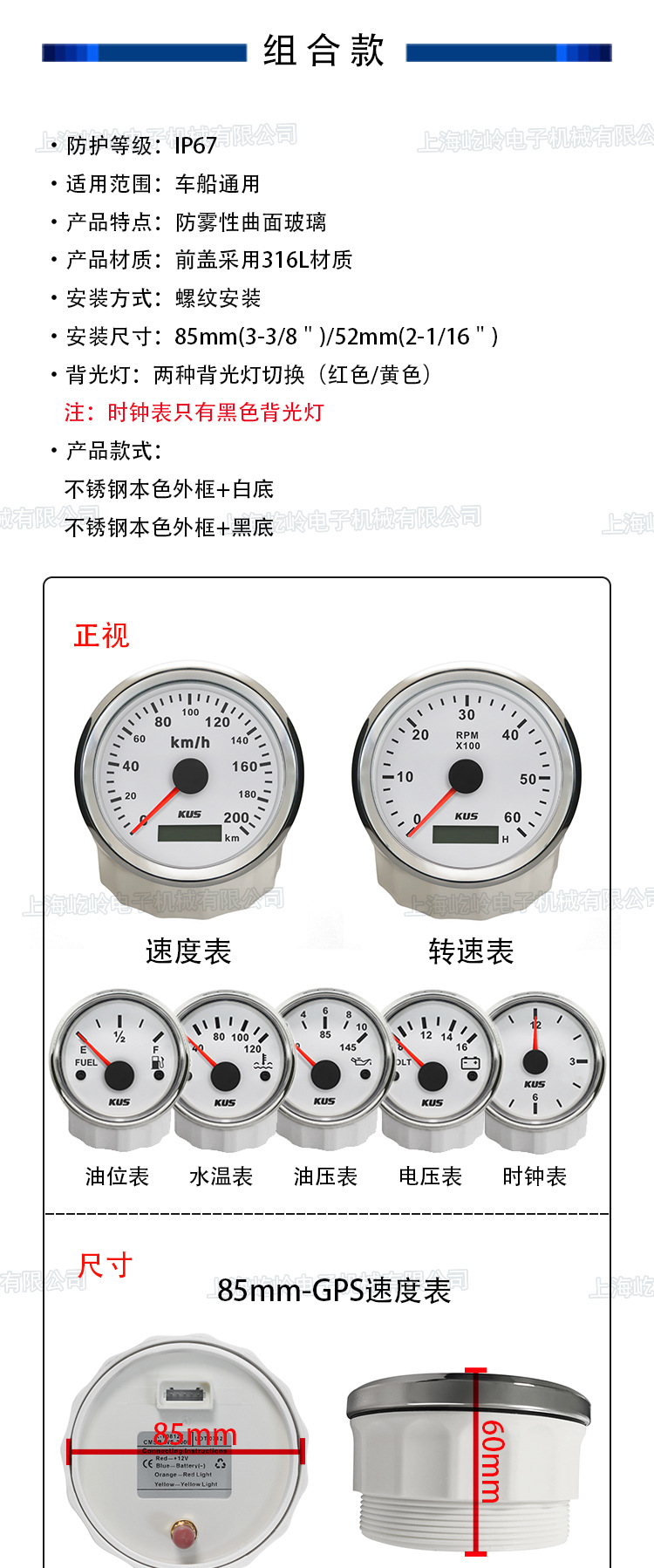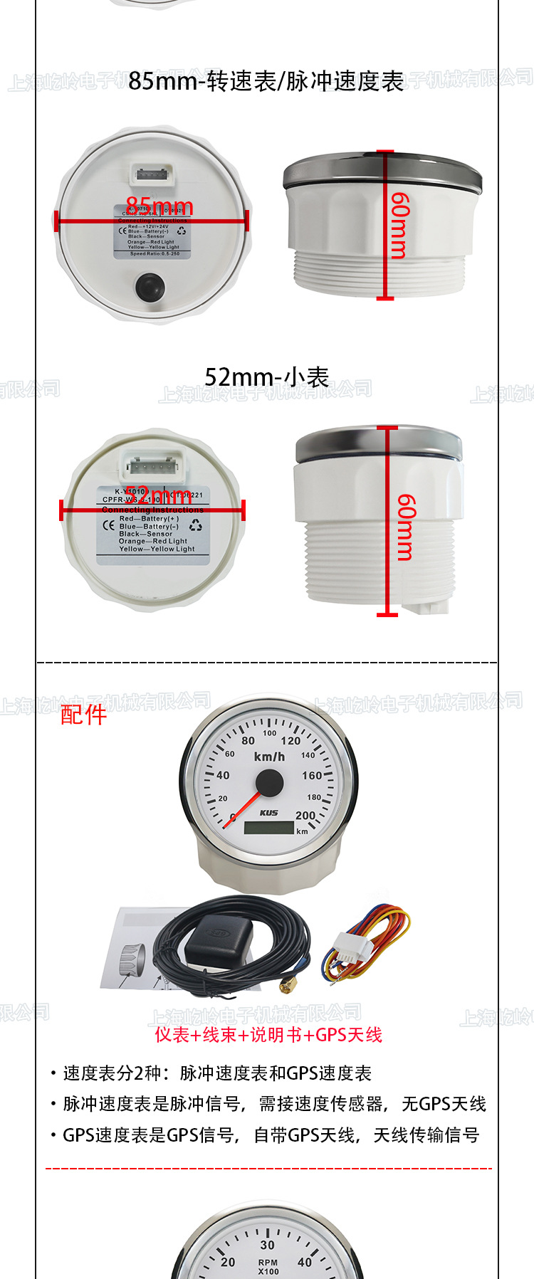 GPS速度表自带GPS天线,脉冲速度表需接速度传感器!