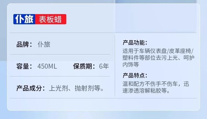 | сортировать по цвету | 【Новая формула⭐Опыт ремонта】Воск для приборной панели*1 бутылка 430 мл + Средства для обслуживания, 【Опыт ремонта⭐Покрытие салона】Воск для приборной панели*1 бутылка 208 мл + Средства для обслуживания, 【Выбор 90% пользователей⭐Уход за салоном】Воск для приборной панели*2 бутылки 430 мл + Средства для обслуживания, 【Специальное предложение⭐Задержка старения】Воск для приборной панели*6 бутылок 430 мл + Средства для обслуживания, 【Выгодный набор⭐Длительная защита】Воск для приборной панели*8 бутылок 430 мл + Средства для обслуживания, Пробный размер воска для приборной панели 200 мл |