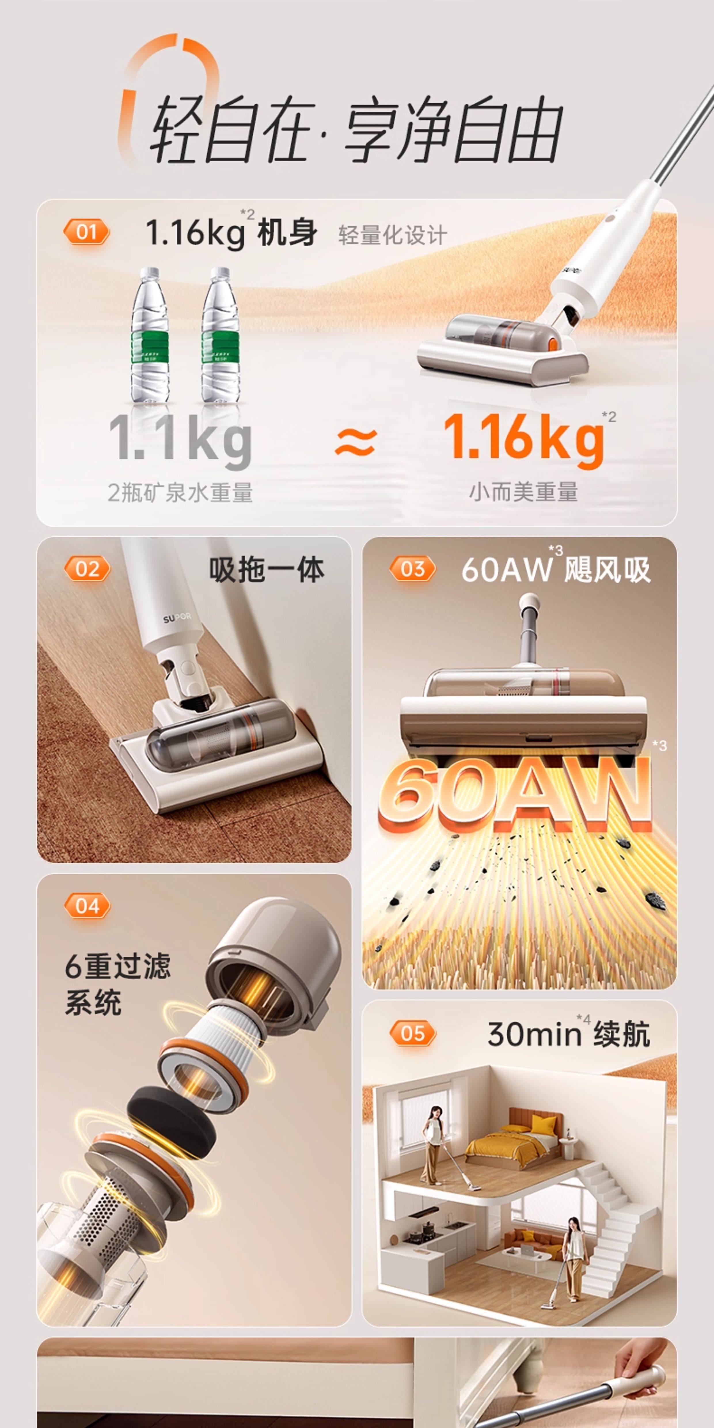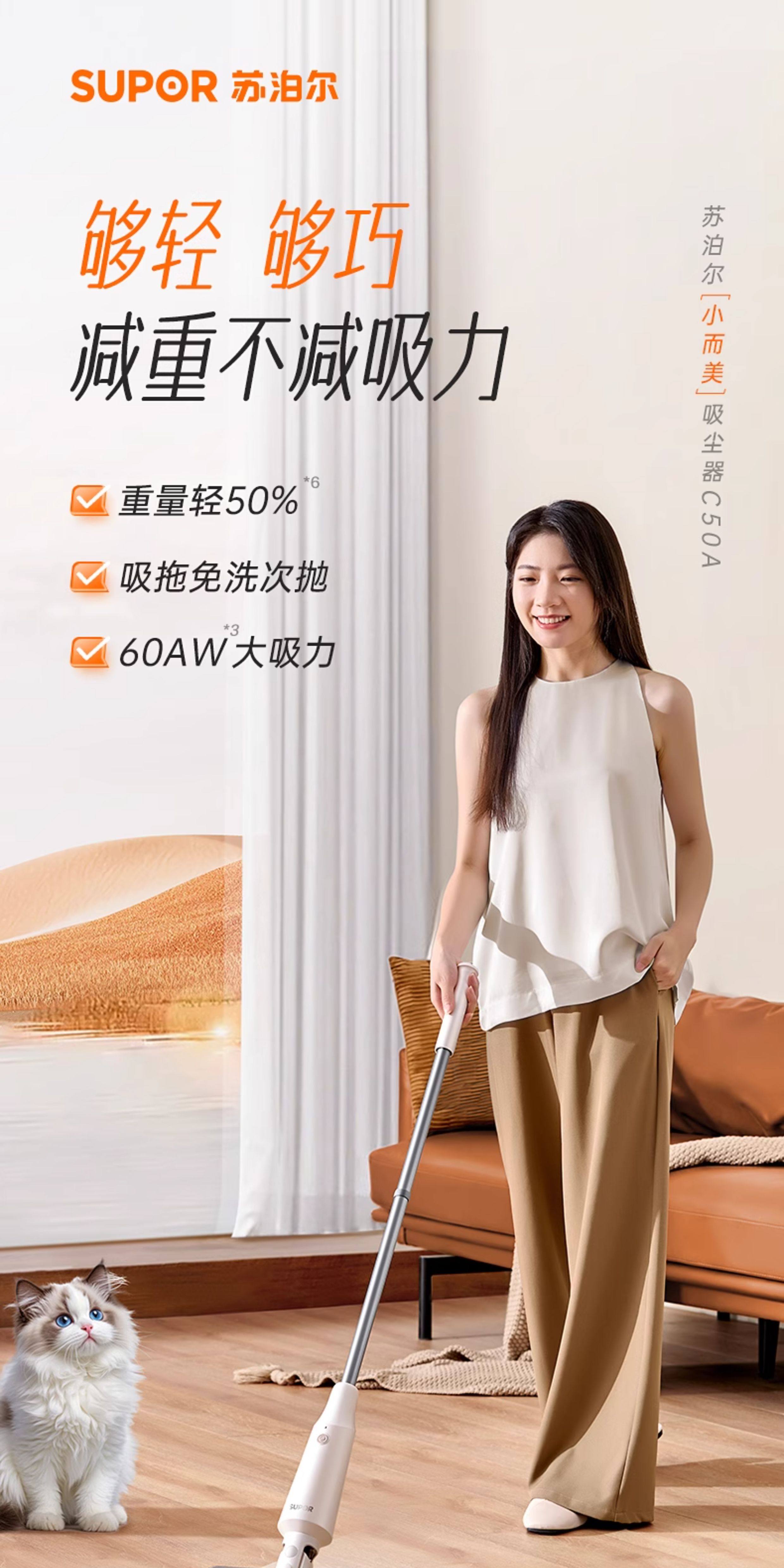 ДомМагазинПылесосSUPOR 2025 — новый лёгкий беспроводной пылесос, небольшой бытовой пылесос с функцией мытья полов, мощное всасывание для кошачьей шерсти и пыли.
