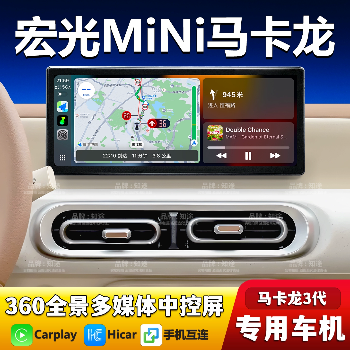 ДомМагазинDVD-навигацияWuling Hongguang Mini EV 3-го поколения, обновленная интеллектуальная автомобильная система Macaron с большим центральным экраном управления, навигацией и панорамным обзором на 360°